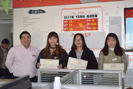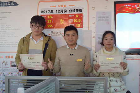 3、 艷梅(11月份個人業績季軍獲得者):11月份個人業績季軍獲得者,這是來創勝以來第一次拿到個人業績前三名,來公司也大半年了,一路走來非常不容易,從最初一點點業績,一直做到第三,其中需要分享的就一句,一步一個腳印,業績不是急就能來的,急于求成,只會摔跟頭,只能一步步的來,這樣才能取得好成績。