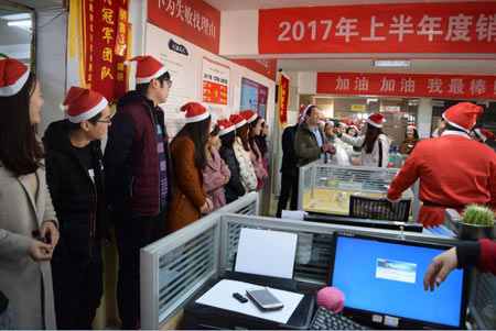 短信公司哪家好?看這里,當2017年歲未的鐘聲來到了12月25日。圣誕狂歡,西方大洋彼岸的喜氣穿洋過海飄至華廈文明的中華大地。恰逢圣誕節這天是周一,8點20分陸陸續續同事們都來到了公司,但這是同事們都發現都平常似乎有所不同,公司也早早我們準備圣誕節準備了很多“驚喜”。