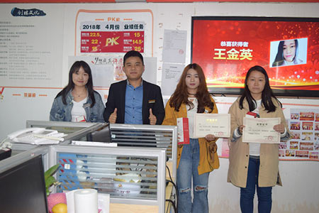 (左一為員工晉升晉級(jí)—毛春艷)