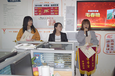 ( 左一為最佳業(yè)績突破獎(jiǎng)獲得者—毛春艷)