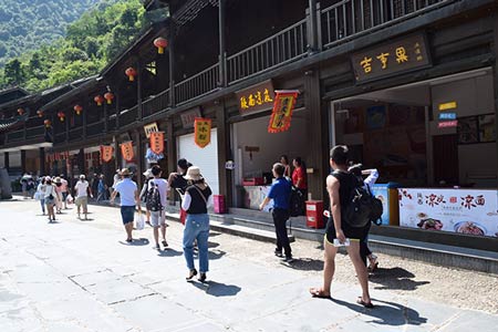 上午我們?nèi)ス淞舜笥X山古鎮(zhèn),古牌坊、古寺廟、古建筑民居、古商鋪渾然一體,古色古香,與現(xiàn)代大都市形成鮮明的對(duì)比。