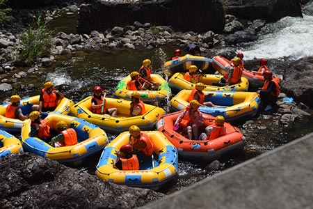 漂流歷時(shí)1小時(shí)左右,水流有時(shí)很急,有時(shí)又很緩,不管是在靜靜的漂移狀態(tài)還是猛沖下坡的激流中,都沒有激起我一點(diǎn)點(diǎn)的害怕感覺,我想,我真的投入到漂流的享受與快樂中了。不過,如果再有機(jī)會(huì),我想我應(yīng)該不會(huì)再去了,不是因?yàn)楹ε拢怯X得很多事情經(jīng)歷過就好。